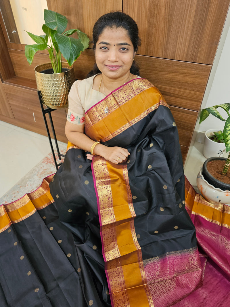 Classical Kanjivaram Pattern Pure Handloom Soft Silk Saree - Black with Maroon