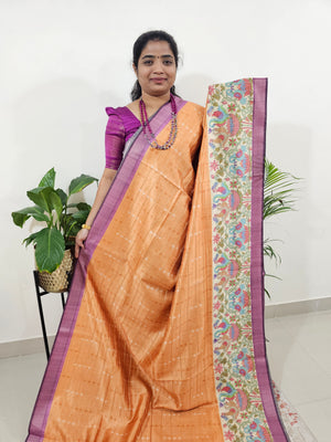 Soft Semi Tussar Weaving with Kalamkari Border - Orange with Purple
