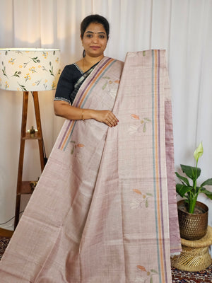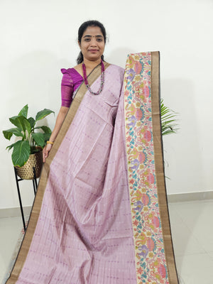 Soft Semi Tussar Weaving with Kalamkari Border - Lavender with Brown