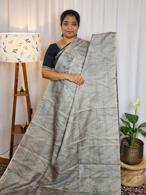 Soft Semi Tussar Checks Weaving with Kalamkari - Grey