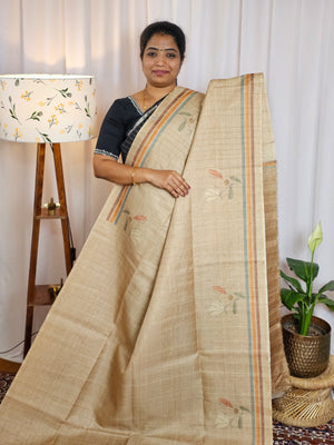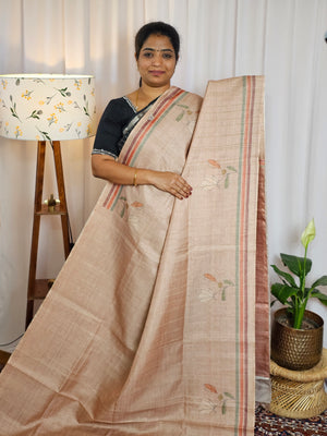Semi Matka Tussar with Kalamkari - Brown