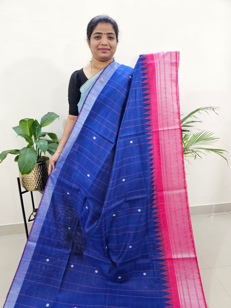 Korvai Weaving Semi Raw Silk Saree - Blue with Pink