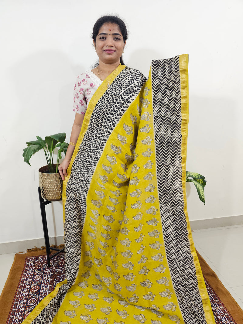 Maheshwari Silk Cotton Hand Block Printed Saree - Yellow