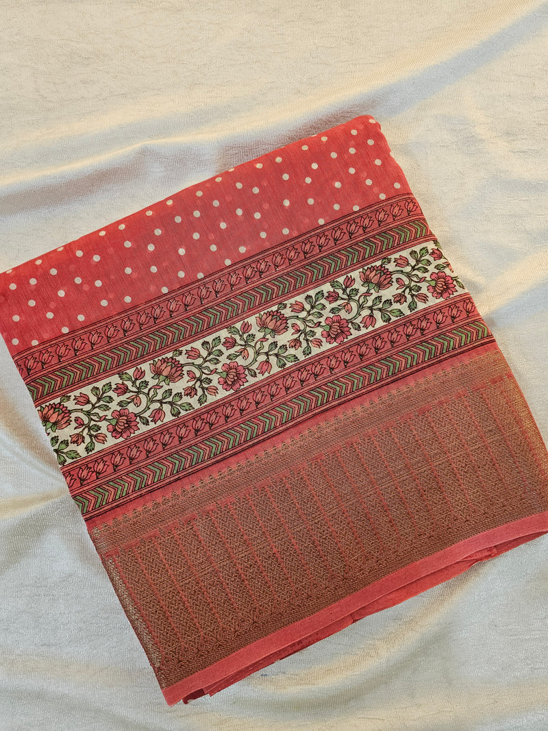 Pure Chanderi Butter Silk - Off-white with Lavender