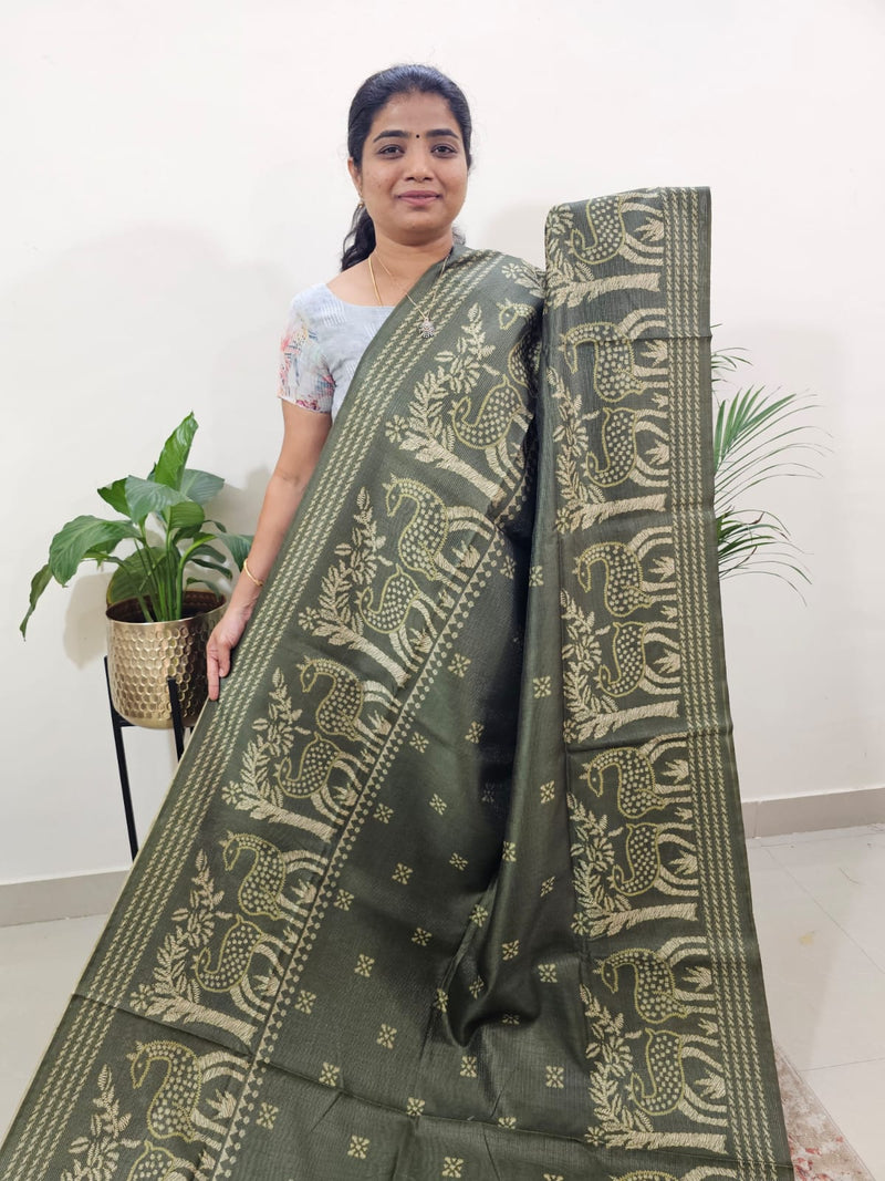 Semi Tussar with Multi Thread Heavy Emboridery Saree - Bottle Green