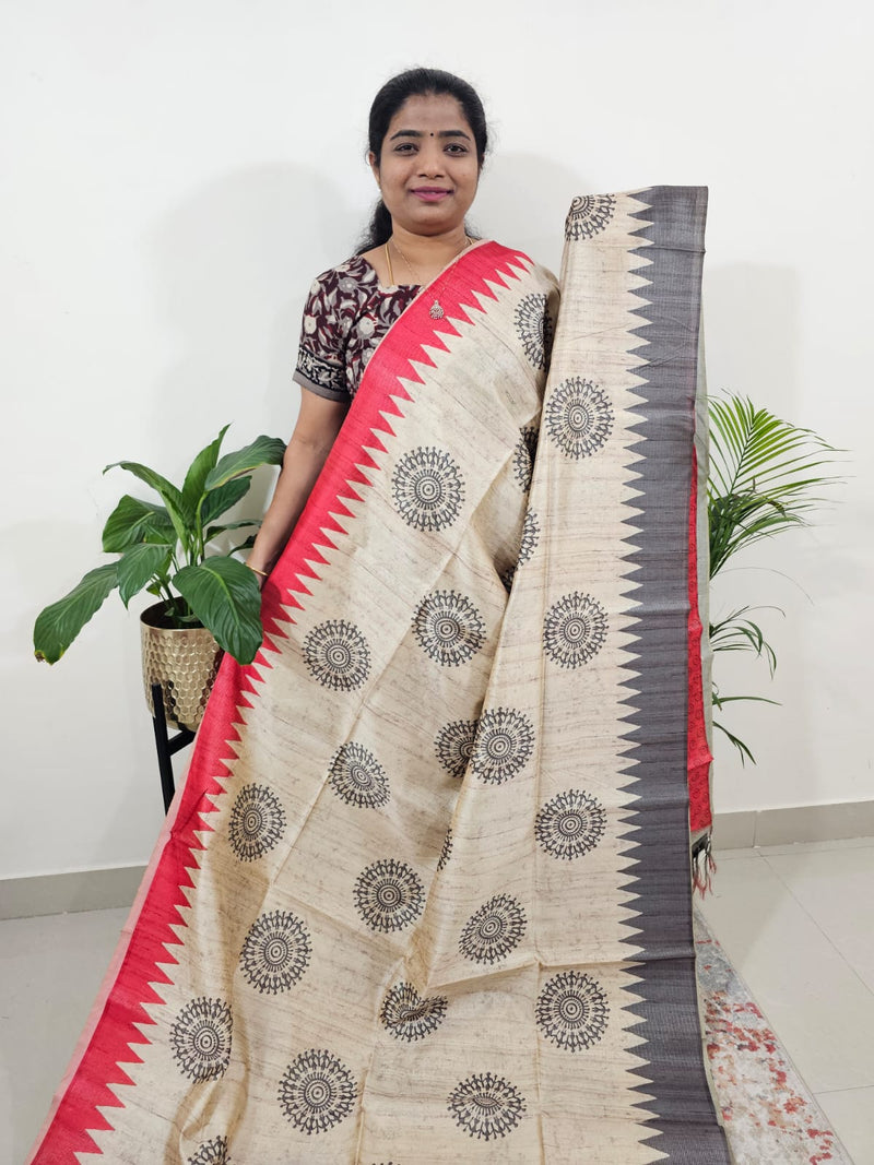 Semi Tussar with Striped Zari Weaving Saree -Red with Green