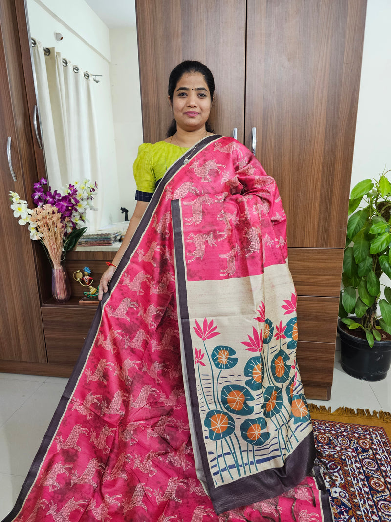 Semi Tussar with Striped Zari Weaving Saree - Bottle Green with Pink