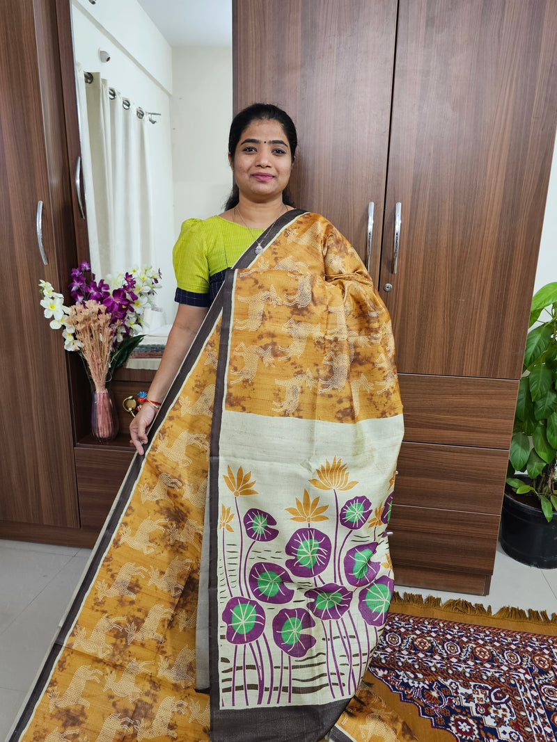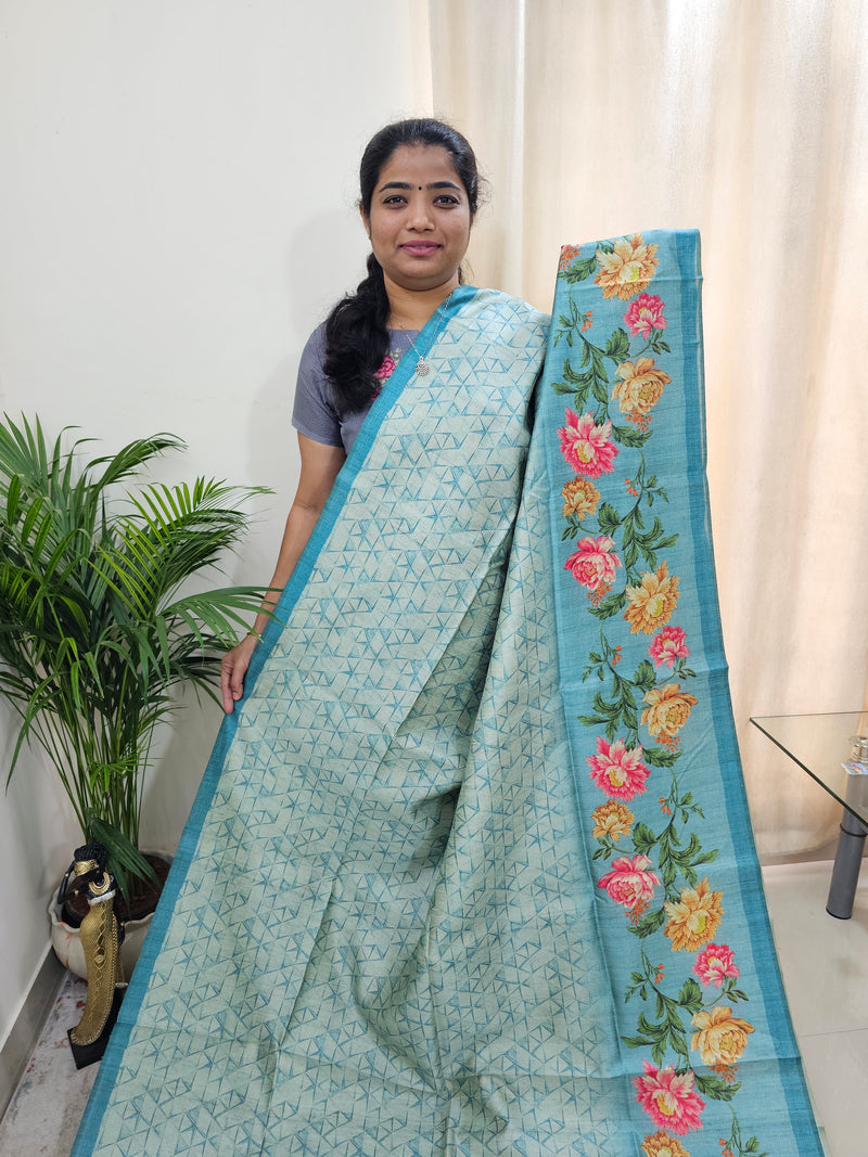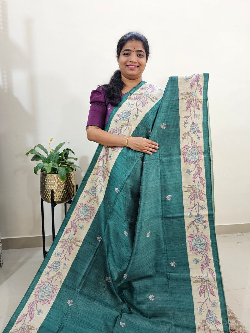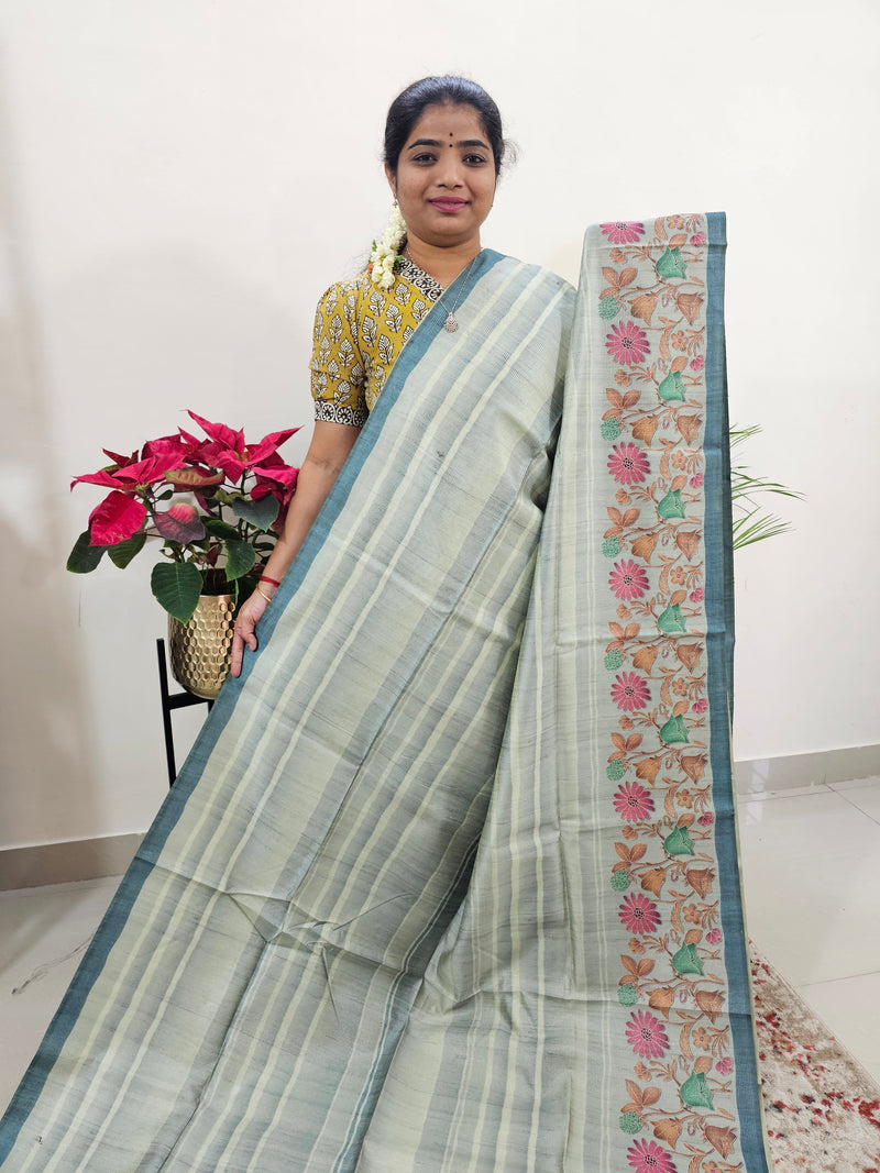 Semi Tussar with Pita Work - Mint Green