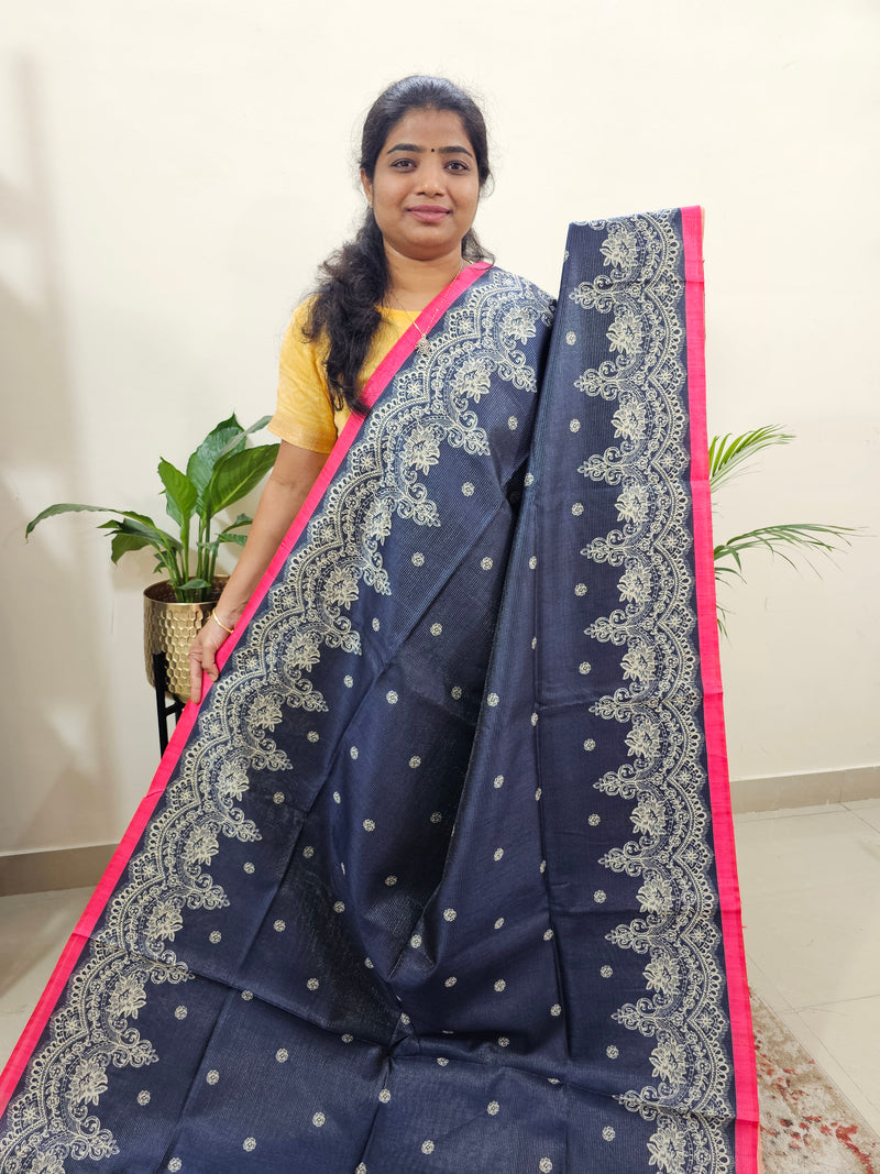 Semi Tussar with Multi Thread Heavy Emboridery Saree - Peacock Blue