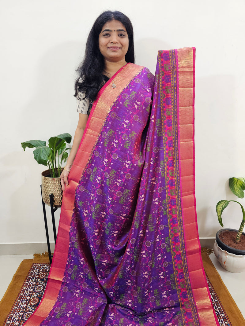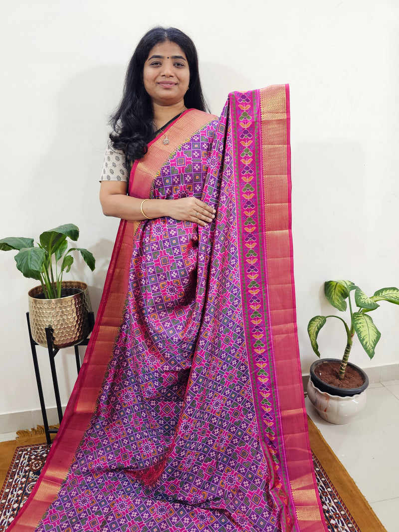 Soft Patola Sarees Kanjivaram Pattern Long Border- Green with Dark Orange
