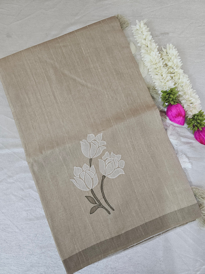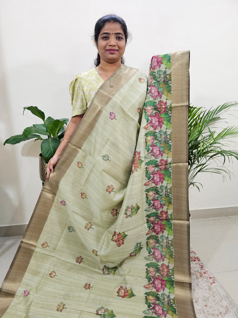 Soft Semi Tussar with Floral Digital Prints Emboridery - Green