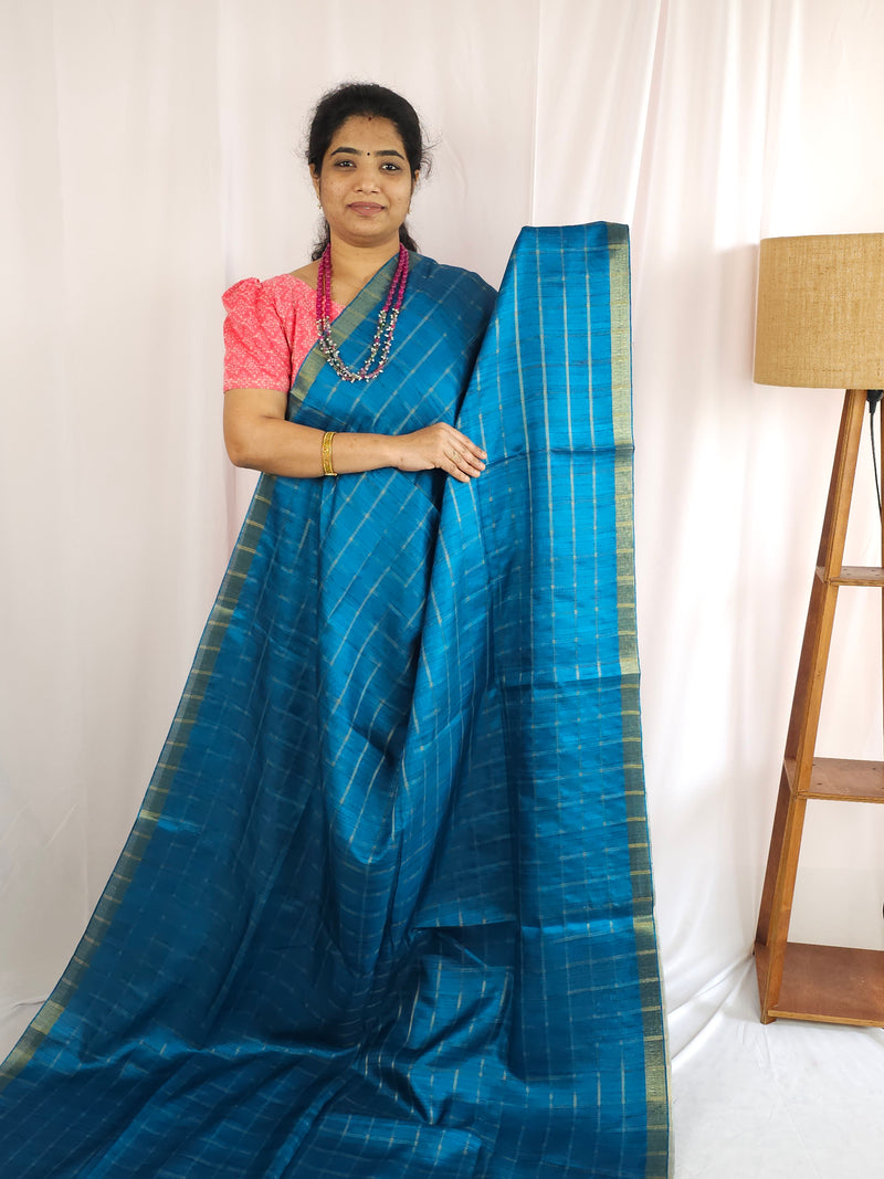 Soft Semi Tussar Checks Weaving with Kalamkari - Dark Green