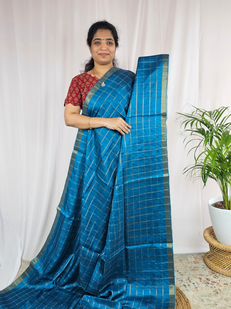 Soft Semi Tussar Checks Weaving with Kalamkari - Grey