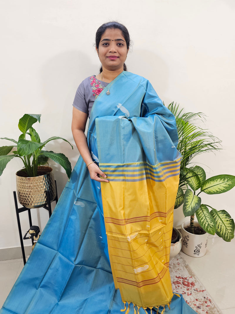 Blue with Yellow Pochampally Ikkat Silk Cotton (SICO Pattu)
