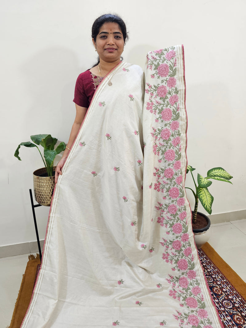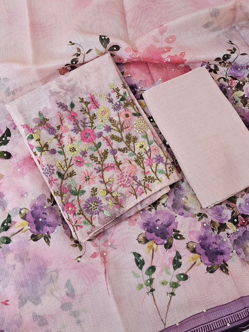 Chanderi with Heavy Hand Emboridery Unstitched Salwar Suit - Blue