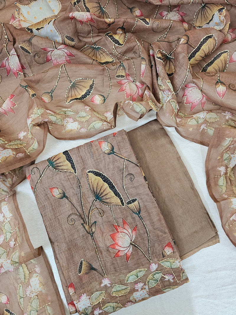 Chanderi with Kantha Unstitched Salwar Suit - Grey