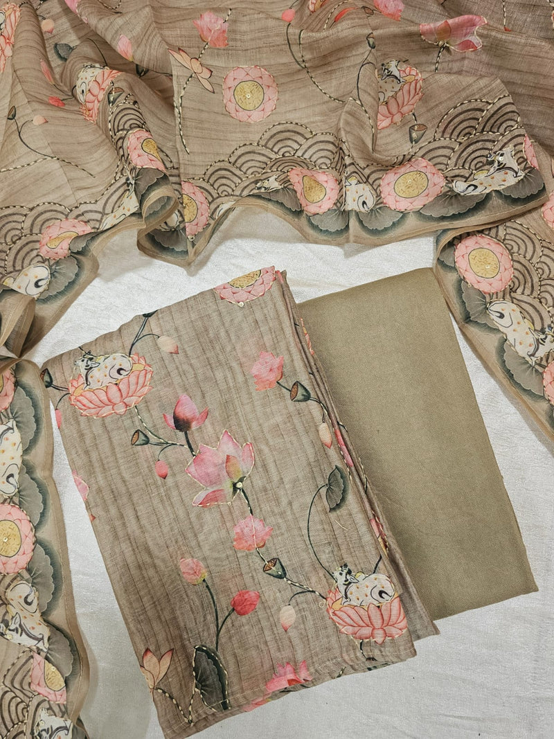 Chanderi with Katha Unstitched Salwar Suit - Dark Grey