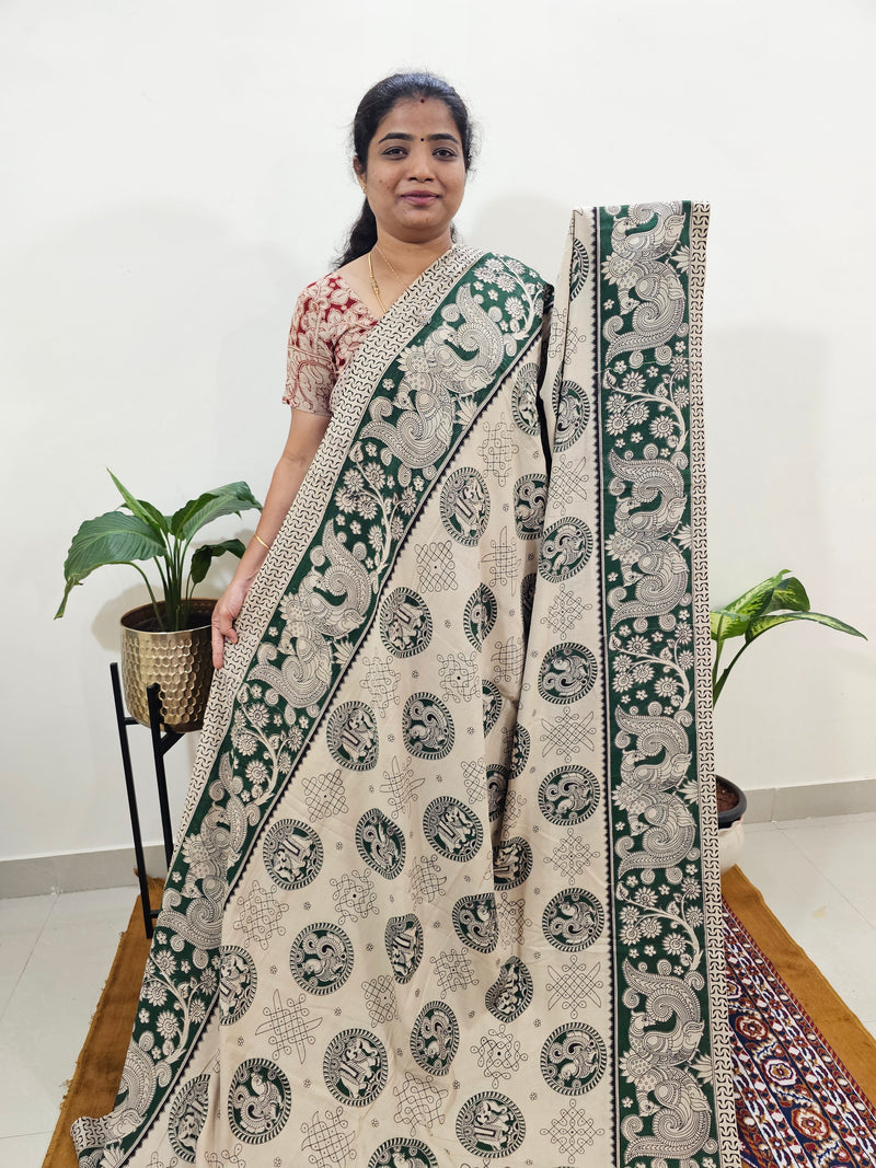 Cotton Kalamkari Saree - Blue Pichwai
