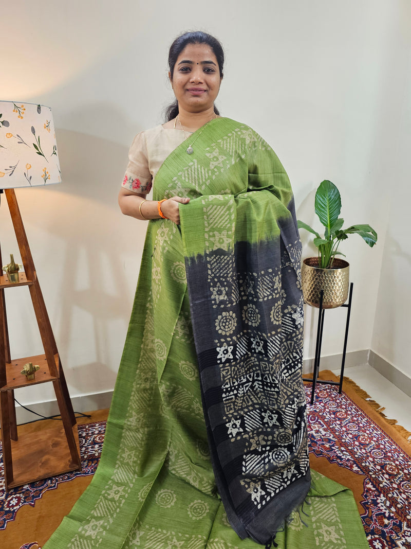 Bhagalpuri with Silver Zari Weaving Batik Print - Green with Grey