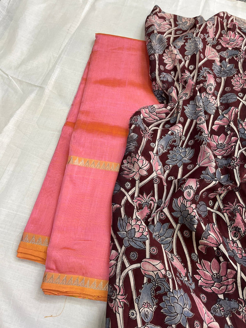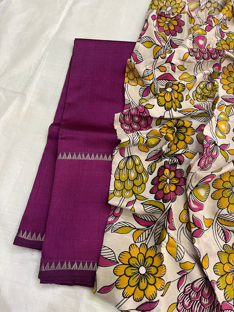 Handwoven Mangalagiri Pattu Saree with Matching Tussar Blouse and Long Border