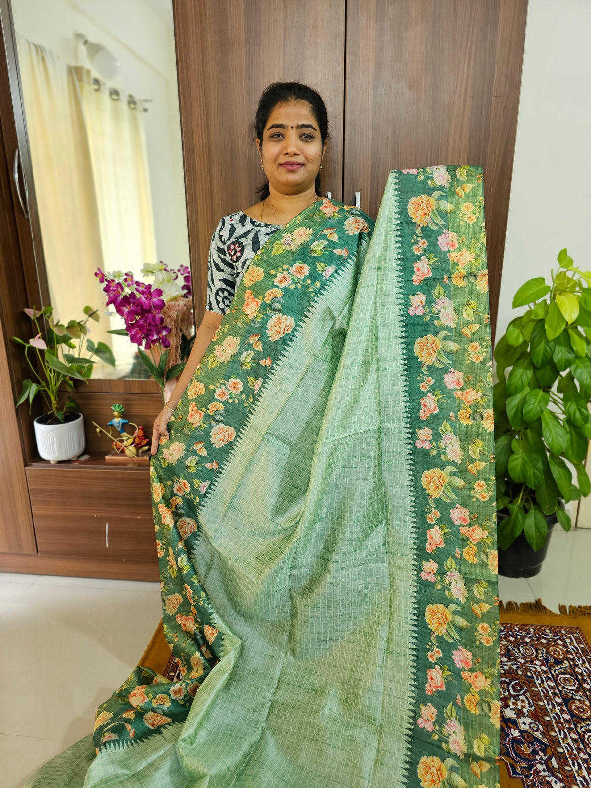 Semi Tussar Sarees with Digital Printed Borders - Light & Dark Green