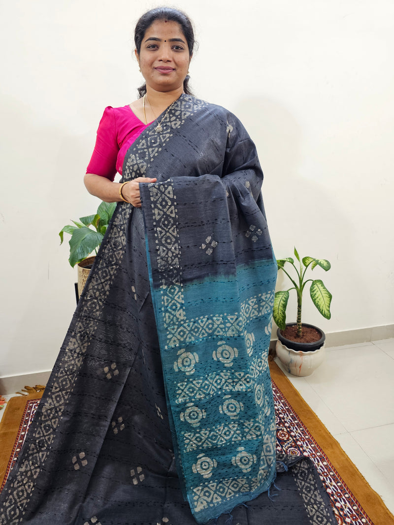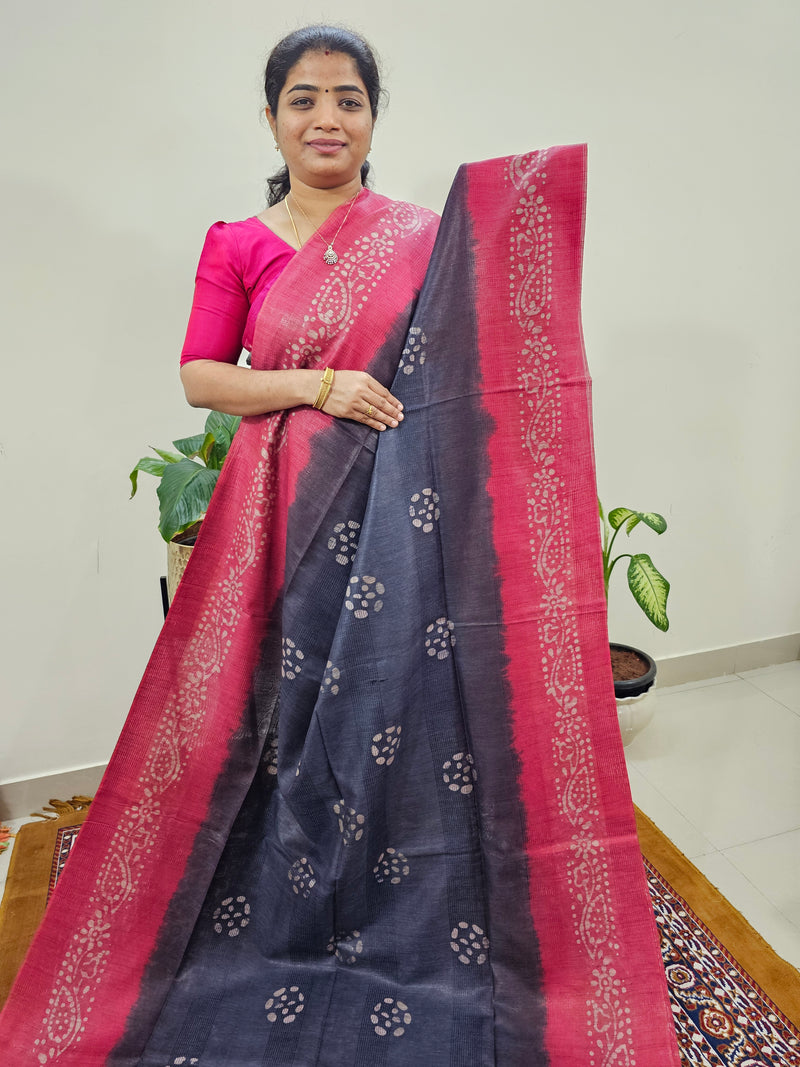 Bhagalpuri with Silver Zari Weaving Batik Print - Blue with Pink