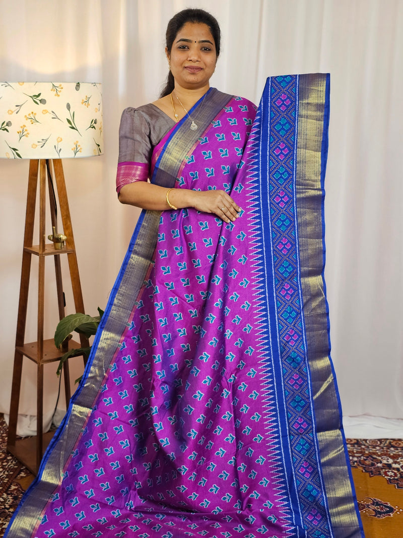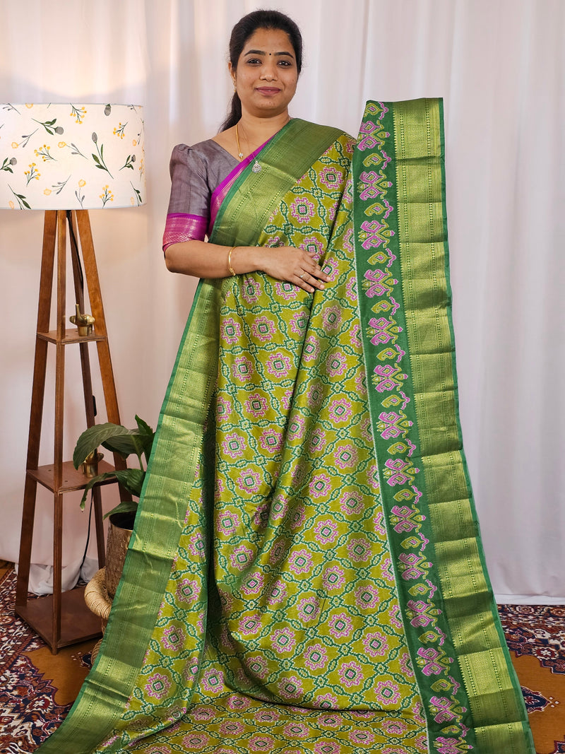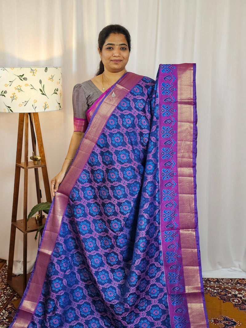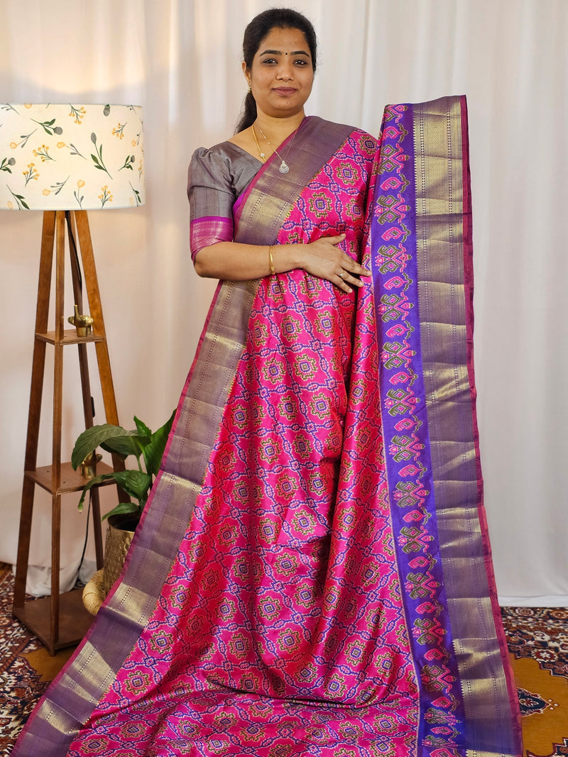 Soft Patola Saree with both side zari woven borders with contrast pallu and blouse.