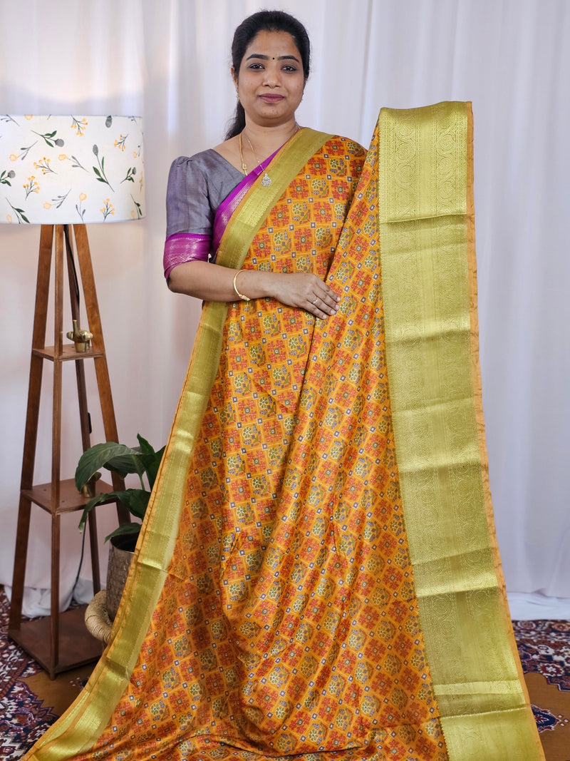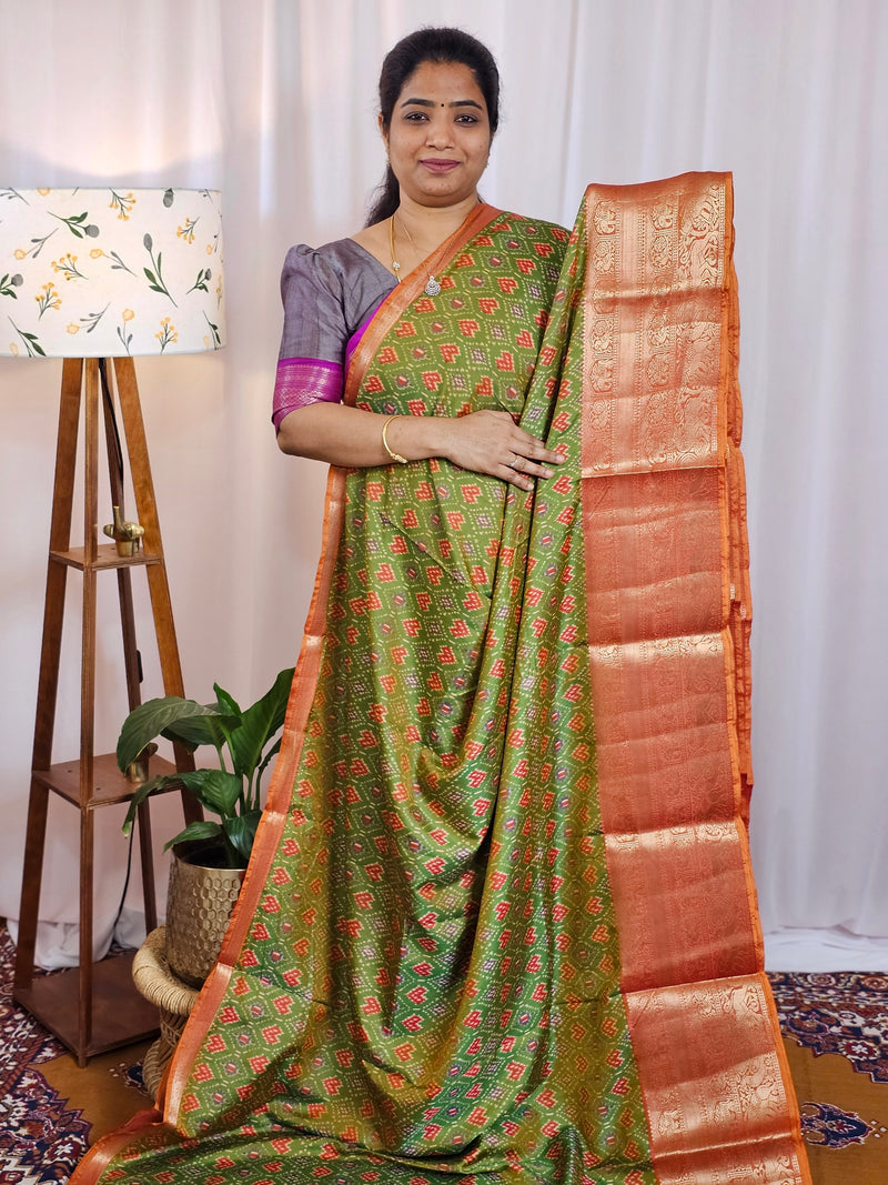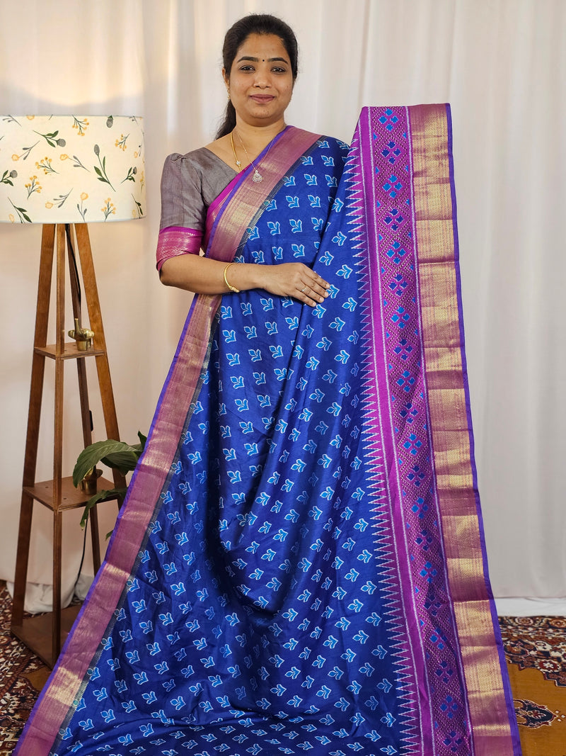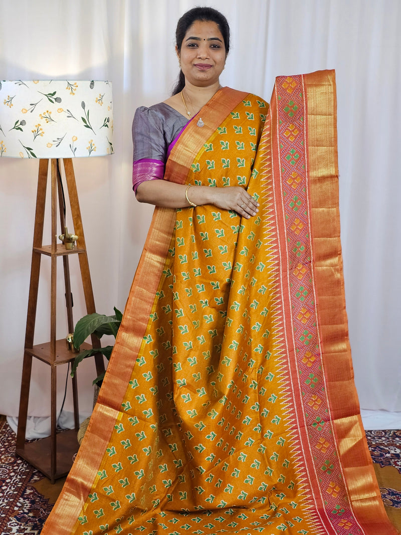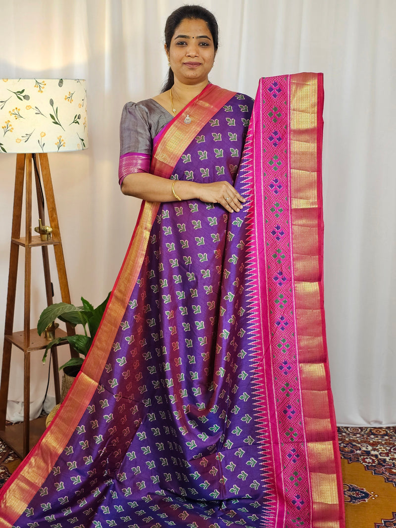 Soft Patola Saree with both side zari woven borders with contrast pallu and blouse.
