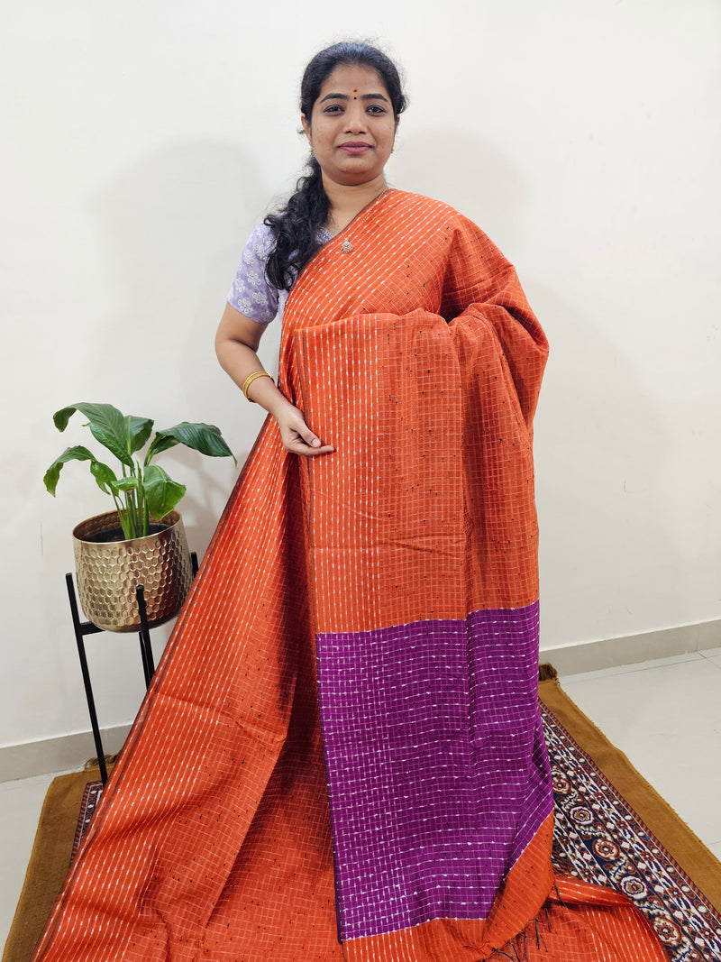 Semi Raw Silk Sarees with Contrast Blouse.Â
