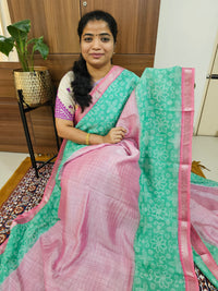 Handwoven Mangalagiri Pattu Saree with Bandhini Digital Prints - Pink with Green