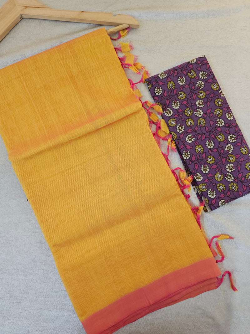 Handwoven Mangalagiri Plain Pattu Saree - Mango Yellow