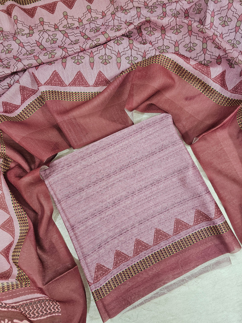 Semi Tussar 2Pcs Unstitched Salwar - Pink