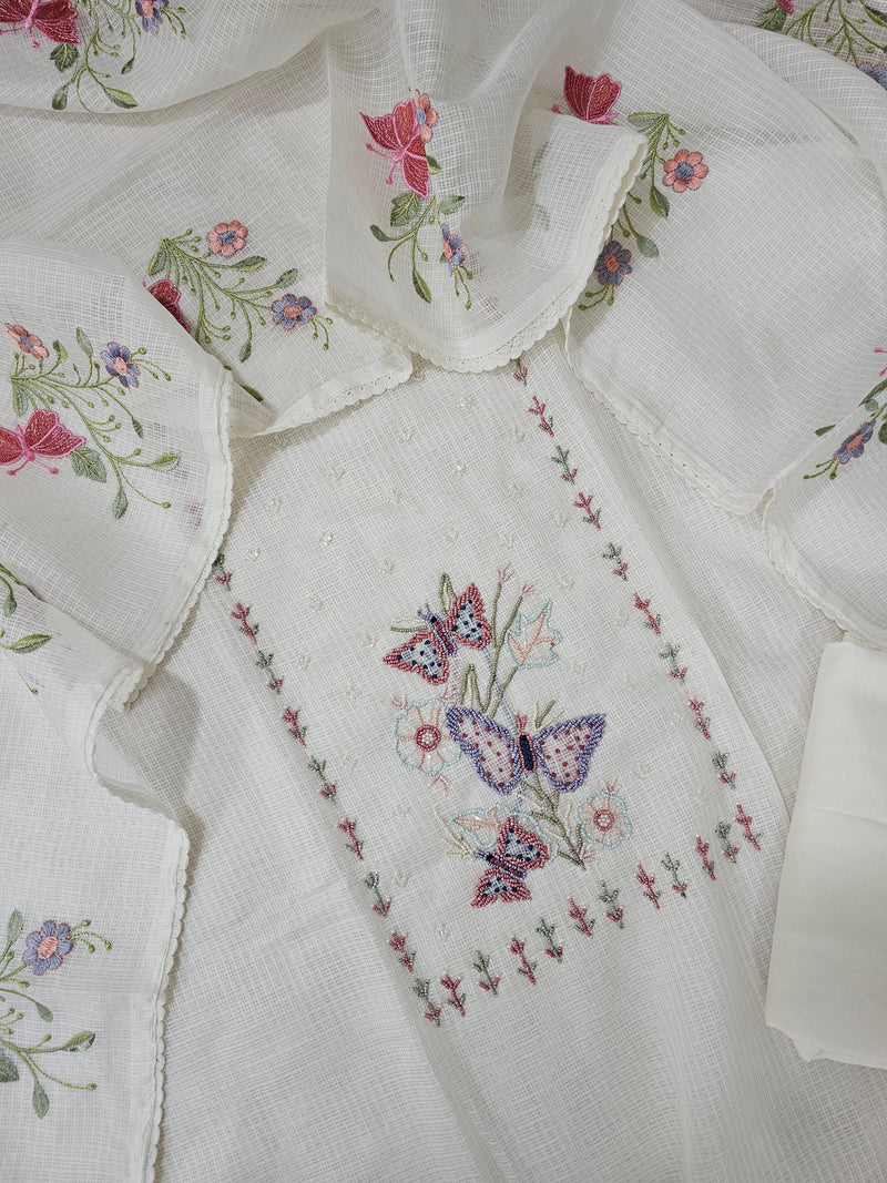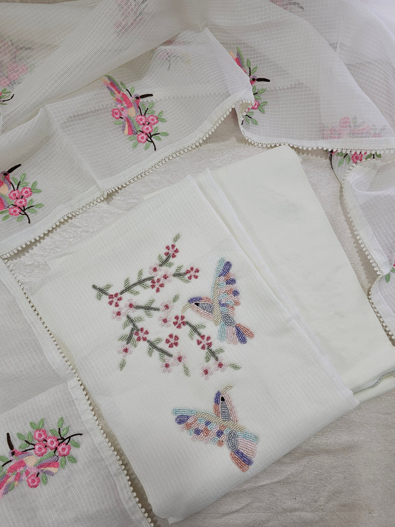 Semi Tussar Kota with Heavy Work Unstitched Salwar - Off-white
