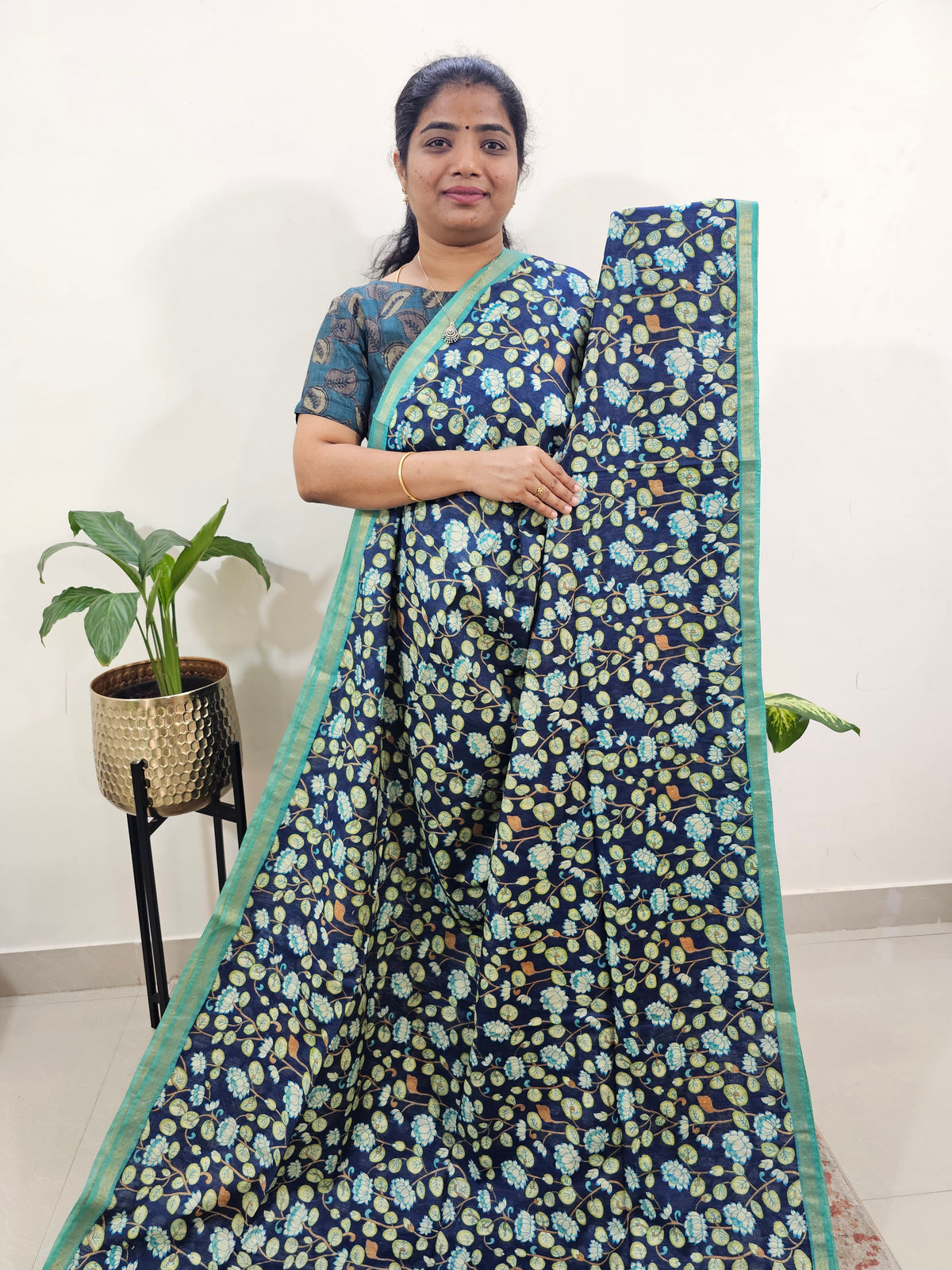 Tussar by Cotton Kalamkari- Blue with Sea Green